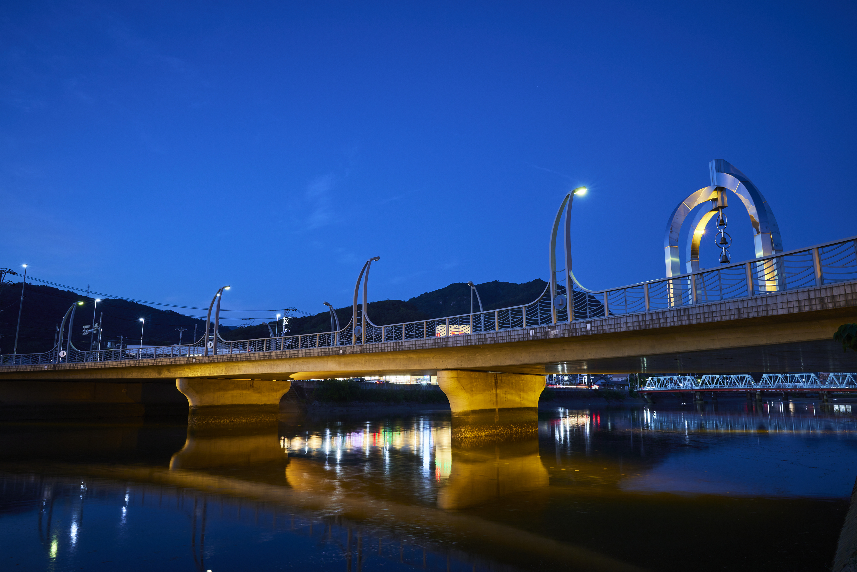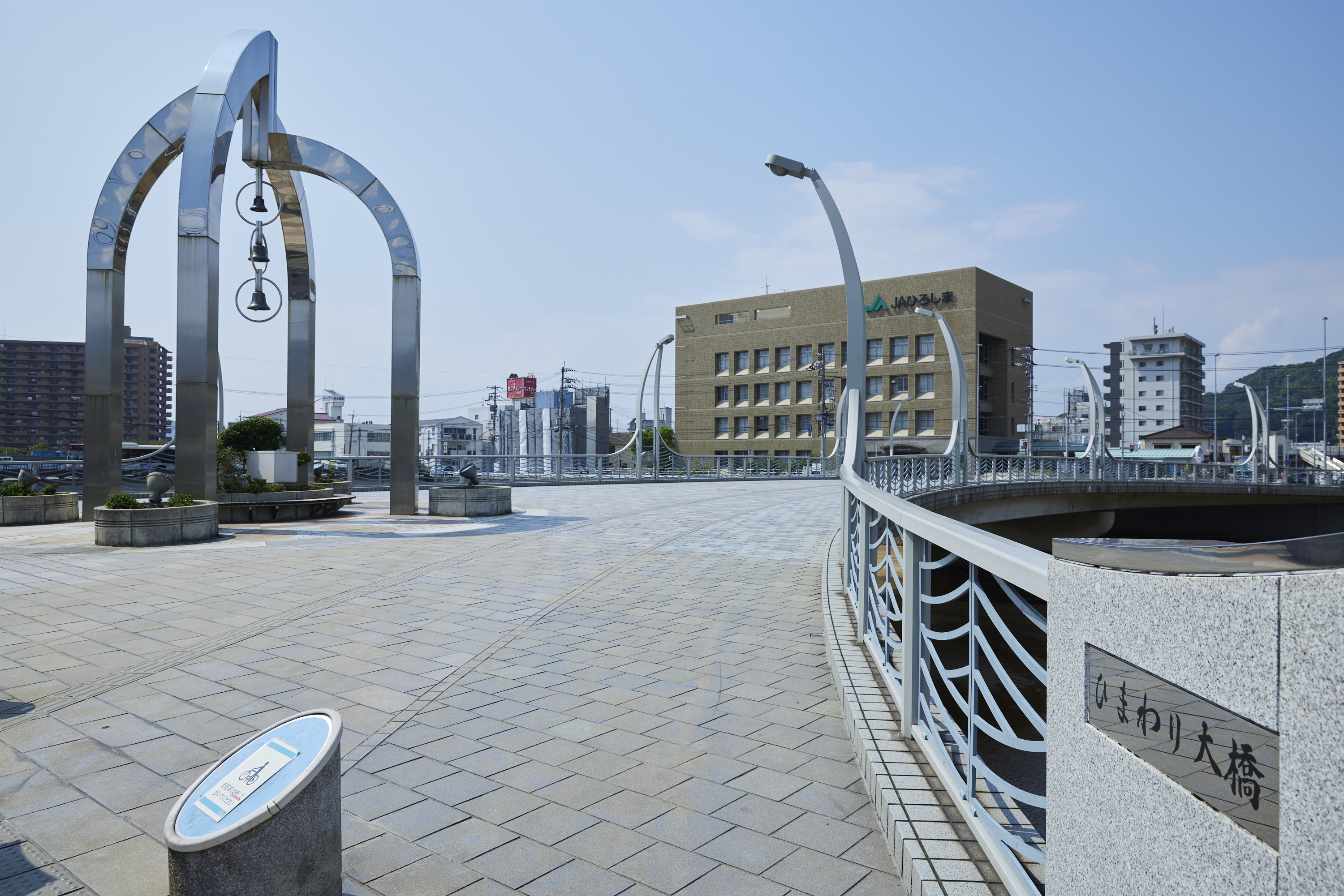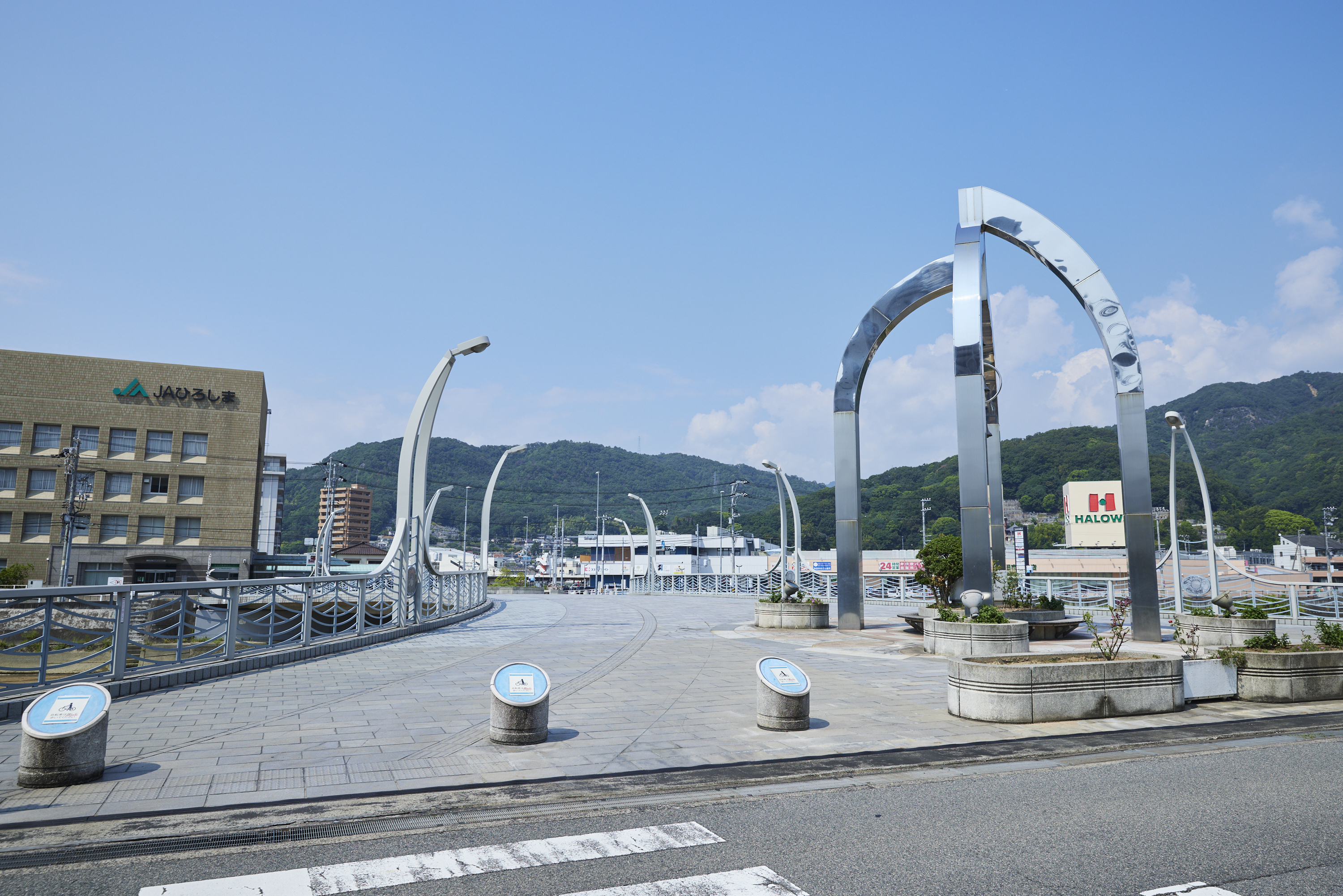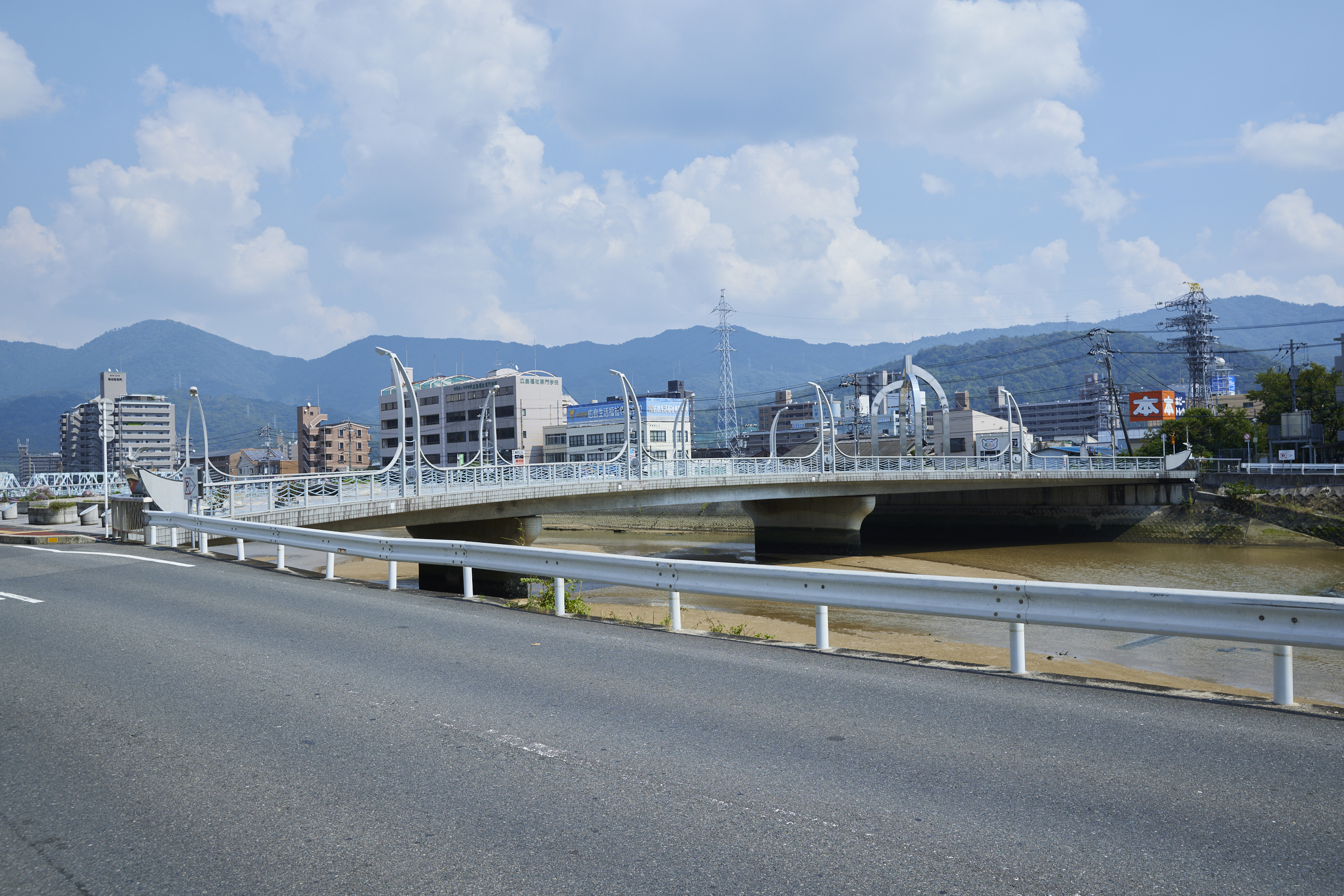 JR海田市駅近く、瀬野川に架かる歩行者・自転車専用の橋。街灯設置工事を担当。